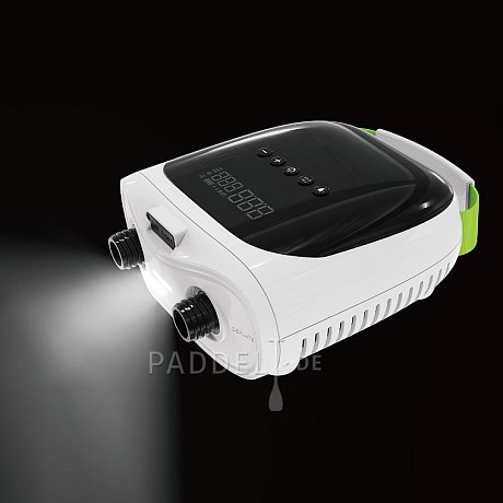 Elektrische Pumpe PADDLEBOARDGURU 9+ inkl. Akku mit Digitaldisplay und einstellbarem Druck bis zu 20 PSI.