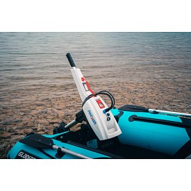 Dieser Motor ist besonders robust und wasserdicht (IP67-Schutzklasse), um Verlässlichkeit auch bei Wellengang zu garantieren. In ruhigem Wasser schaltet der Motor in einen Energiesparmodus, um die Batterieentladung zu minimieren. Die Bedienung ist sehr intuitiv und einfach – mit einem Tastendruck wird der Motor gestartet und dank stufenloser Geschwindigkeitsregelung lässt sich die Fahrt sicher und präzise lenken.