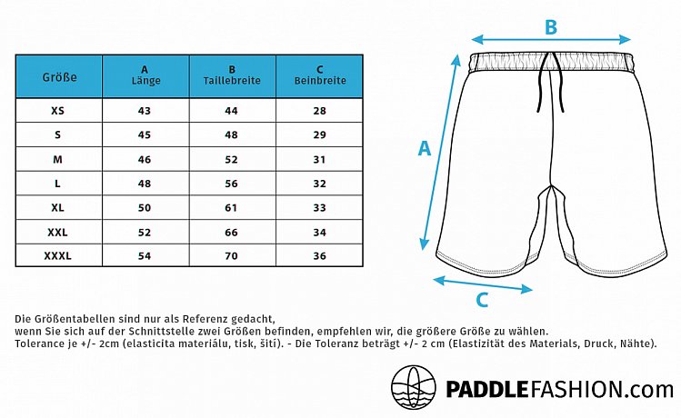 Loose Fit Shorts mit elastischem Bund und Kordelzug. Geeignet für Paddleboarding und jede andere Sportart. Atmungsaktives und schnell trocknendes Material. Marke PADDLEFASHION.COM, hergestellt in der EU.
