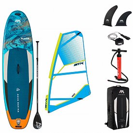 Das AQUA MARINA Blade 10'6 + STX Segel nach gewählter Größe + Mastfuß um das Segel zu montieren + Paddel.