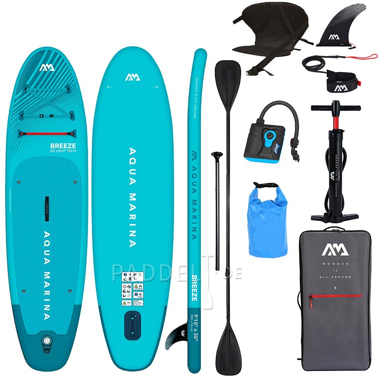 Das AQUA MARINA BREEZE 9'10" BLUE Limitierte Edition (BT-23BRPB) gehört in die Kategorie Kleine Allround Boards. Das Board ist 300 cm lang, 76 cm breit und nur 12 cm hoch. Die reduzierte Board-Höhe von 12 cm ist ideal für leichtere Fahrer. Weil man näher an der Wasseroberfläche steht, liegt der Schwerpunkt niedriger und macht das Board dadurch kippstabiler. Dank der Drop-Stitch Light Technologie ist das SUP leichter und ist ideal für kleinere Fahrer.