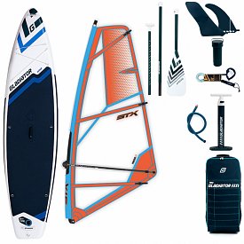 Das GLADIATOR WindSUP 11'6'' + STX Segel nach gewählter Größe + Mastfuß um das Segel zu montieren.