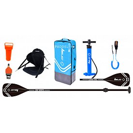 Grund-Set: Board, 3-teiliges verstellbares Paddel, Pumpe, Leash, Finne, Reparatur-Kit
